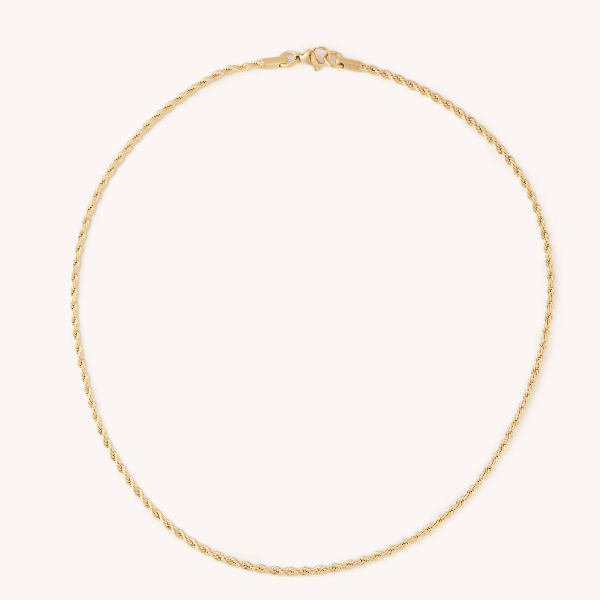 We love the look of this rope design and we know it will pair perfectly with all of your other jewels! This necklace is stainless steel so it will never turn or tarnish. This necklace measures 16 inches and is 2mm wide, dainty and detailed!